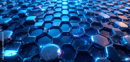 © Supardi, Obraz premium Abstract Blue Hexagonal Geometric Structure Design