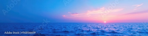 © intothestar, Obraz premium Abstract blue landscape, gradient sky to deep ocean hues, ocean, water, mystical