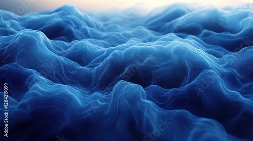 Obraz premium Abstract blue landscape, rippling fabric, mountainous terrain, sunrise...