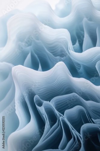 © arlisa, Obraz premium Abstract blue layered paper waves, studio shot, texture background, design element