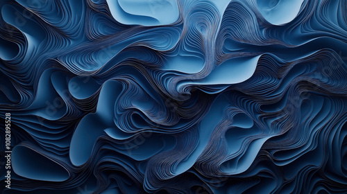 Obraz premium Abstract blue layered waves creating a fluid and textured effect with smooth curves and flowing forms