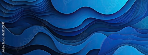 © Hirsa, Fototapeta premium Abstract blue layered waves with varying shades and depths creating a three-dimensional effect