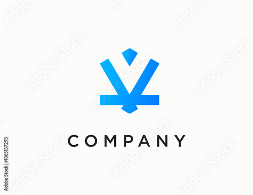 Obraz premium Abstract blue letter V logo design with a small diamond shape.