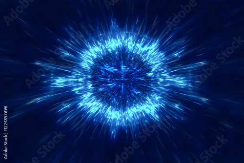 Fototapeta premium Abstract Blue Light Explosion Radiates Energy on Dark Background with Dynamic...