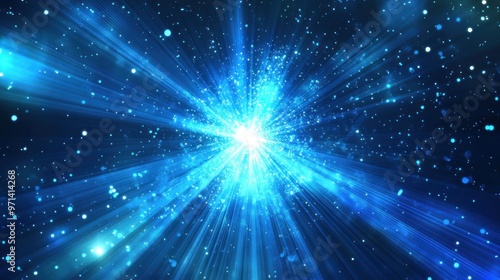 © MAHLUFI_, Naklejka premium Abstract Blue Light Explosion with Sparkles