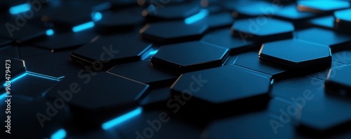 © matoya, Obraz premium Abstract Blue Light on Hexagon Pattern