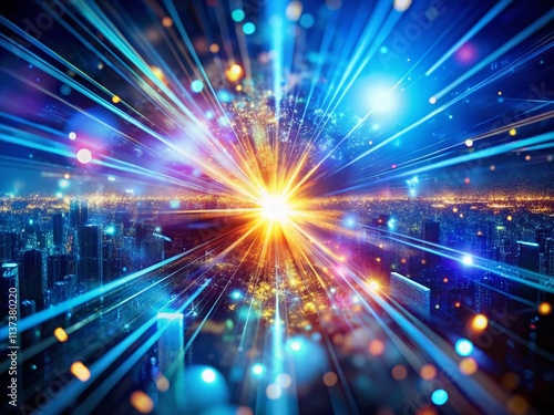 © Man888, Fototapeta premium Abstract Blue Light Rays, Glowing Neon Speed, Technology Communication Background, Bokeh Effect
