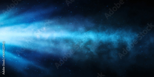 Fototapeta premium Abstract blue light streak in dark space background with glowing stars