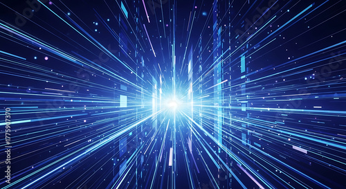Fototapeta premium Abstract blue light streaks and particles exploding outwards image