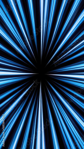 © Designer Raiful, Obraz premium Abstract blue light streaks emanating from a central point creating a dynamic speed effect backdrop