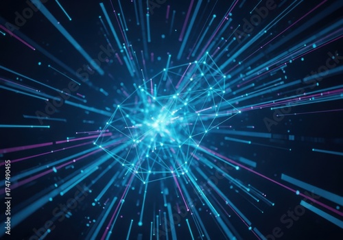 © Naved, Naklejka premium Abstract blue light streaks exploding outward isolated on white background