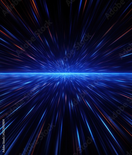Obraz premium Abstract: Blue Light Streaks into a Horizon Point, Creating a Sense of Speed...