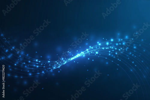 Obraz premium Abstract blue light trails and glowing particles representing digital...