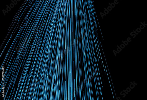 © Suaib, Fototapeta premium Abstract blue light trails falling down on a black background in motion