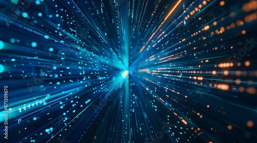© sungedi, Fototapeta premium Abstract blue light trails in the dark, motion blur effect