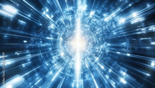 Fototapeta premium Abstract blue light tunnel, futuristic digital data stream.