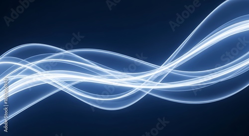 © MSTSULTANA, Naklejka premium Abstract blue light waves flowing on dark background