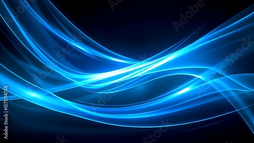 © Saksit, Naklejka premium Abstract blue light waves swirl gracefully against a dark background, creating a dynamic and futuristic visual effect.