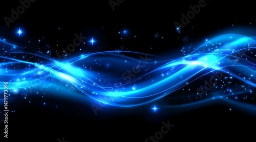 Obraz premium Abstract Blue Light Waves with Sparkles on Black Background