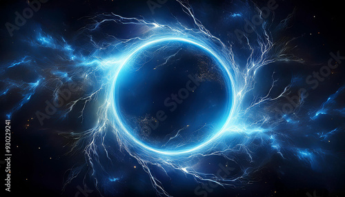 Obraz premium Abstract blue lightning circle on dark backdrop. Mysterious shape.