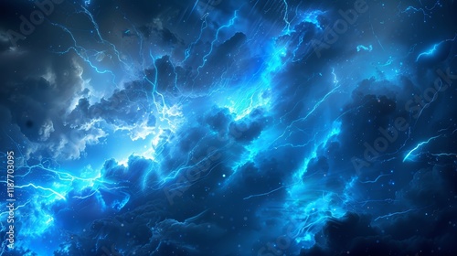 © AItist, Fototapeta premium Abstract Blue Lightning Storm Wallpaper