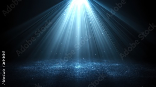 © Business Pics, Fototapeta premium Abstract blue lines converge in a luminous beam against a dark background.