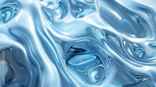 © chesleatsz, Obraz premium Abstract Blue Liquid Surface with Swirling Patterns