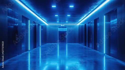 Fototapeta premium Abstract Blue Lit Elevator Hallway