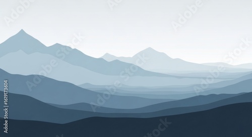 © Ryan, Fototapeta premium Abstract Blue Mountain Landscape with Layered Hills in Soft Gradient Style