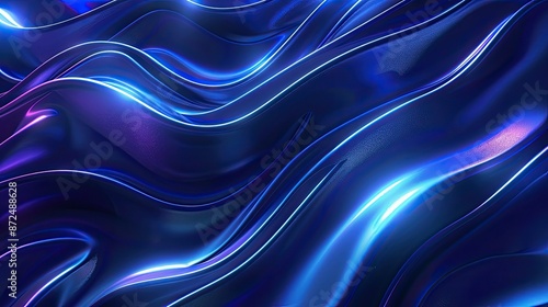 Fototapeta premium Abstract blue neon background with gentle waves, minimalist and chic