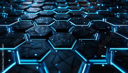 Obraz premium Abstract Blue Neon Glowing Hexagon Pattern