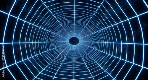 Fototapeta premium Abstract Blue Neon Grid Tunnel: Digital Network