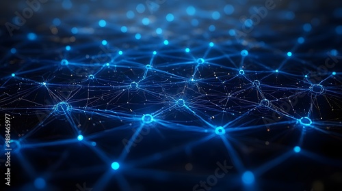 © Phichaphat, Obraz premium Abstract Blue Network Connection Background