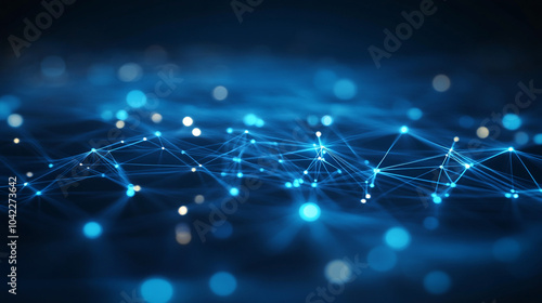 © Daniel, Obraz premium Abstract Blue Network Connection Dots and Lines