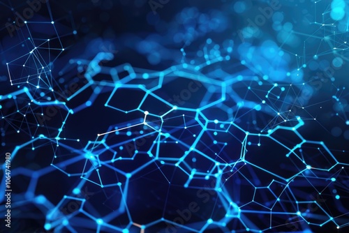© boler, Obraz premium Abstract Blue Network with Glowing Lines and Points