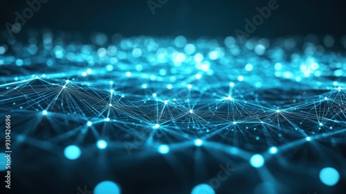 Obraz premium Abstract Blue Network with Glowing Nodes and Lines