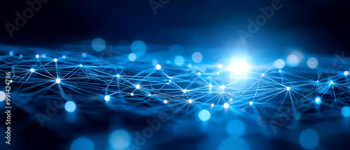 © NightTampa, Obraz premium Abstract blue network with glowing points, network concept