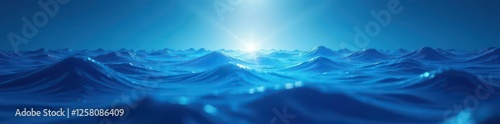 © photohappy, Fototapeta premium Abstract blue ocean scene, focused light beam , graphic, background