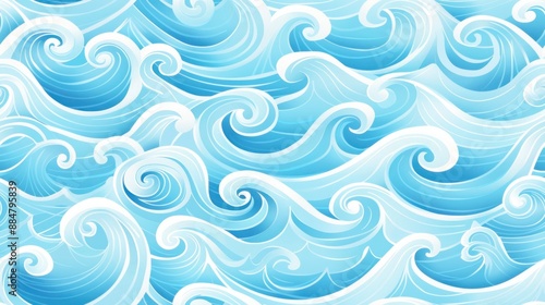© Iswanto, Fototapeta premium Abstract Blue Ocean Wave Seamless Pattern