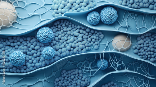 Obraz premium Abstract blue organic structure with spherical formations and textured...