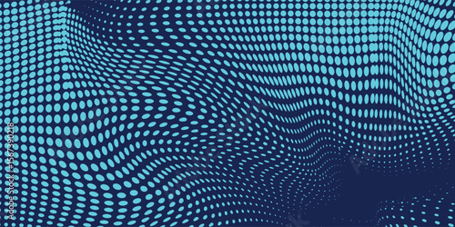 © moh amiruddin, Obraz premium Abstract blue particle background. Flow wave with dot landscape. Digital data structure. Future mesh or sound grid. Pattern point visualization. Technology vector illustration.