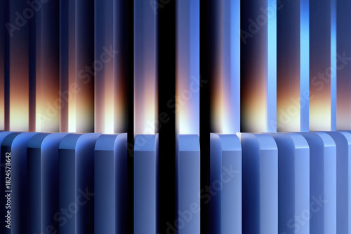 Fototapeta premium Abstract blue pillars with gradient light reflection in modern design
