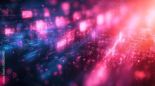 © Lina, Fototapeta premium Abstract blue, pink, and mint geometric background with a digital distorted motion glitch effect.