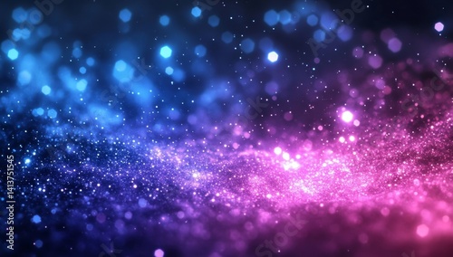 © Wa Bale, Obraz premium Abstract blue pink glowing particles background.
