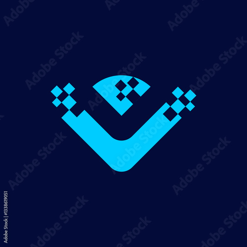Obraz premium Abstract Blue Pixelated Letter V Logo Design