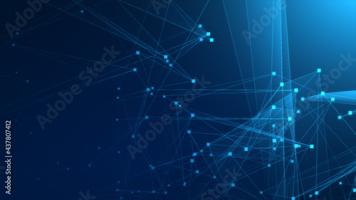 © Papapig, Obraz premium Abstract blue polygon tech network with connect technology background. Abstract dots and lines texture background. 3d rendering.