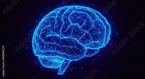 Fototapeta premium Abstract Blue Polygonal Mesh Human Brain Digital Health Science