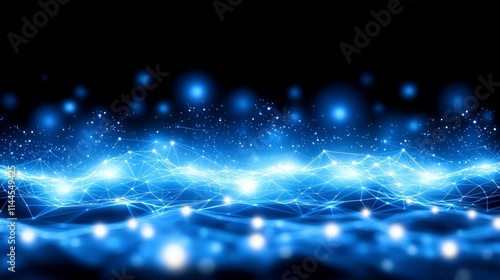 © BOJOShop, Obraz premium Abstract Blue Polygonal Network Data Technology Connection Background