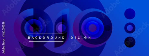 Obraz premium Abstract blue purple gradient circles create dynamic background. Text reads background design. Modern visual element.