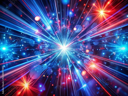 © Danicha, Naklejka premium Abstract Blue Red Blurred Rays Fantastic Holiday Background Digital Fractal Art 3D Render